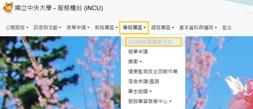 自本校portal登入 >便捷窗口>服務櫃台 >學務專區> UCAN就業職能平台 自行上線完成。