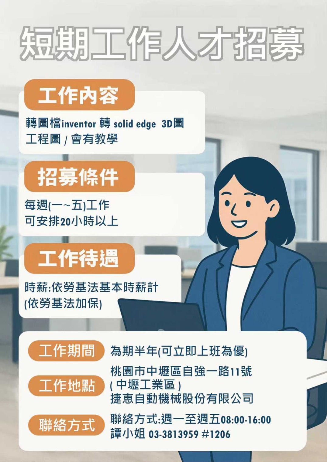 工作地點:桃園市中壢區自強一路11號(中壢工業區)