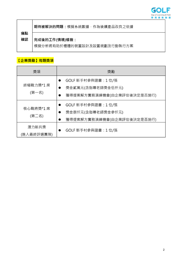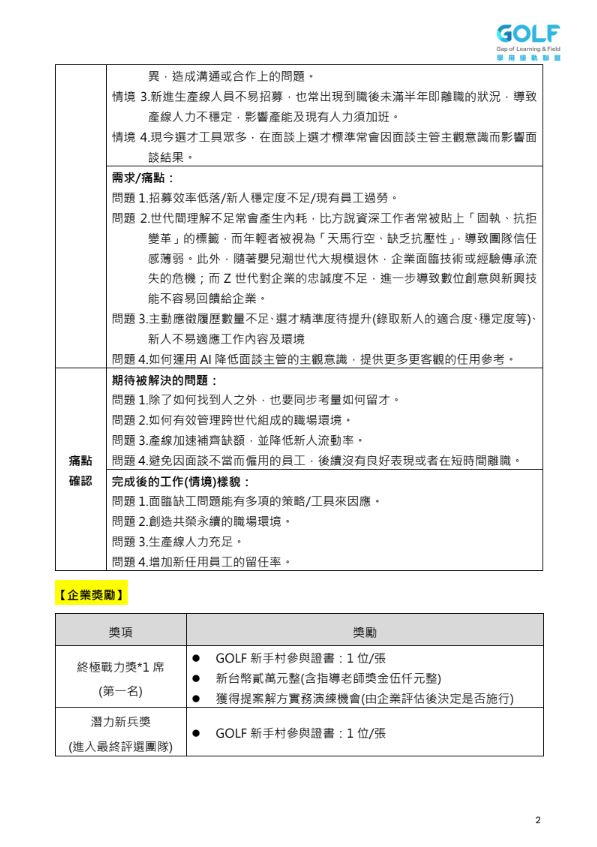 GOLF 新手村提供一個「低風險、高收穫」的產學對接場域。透過「企業出題、