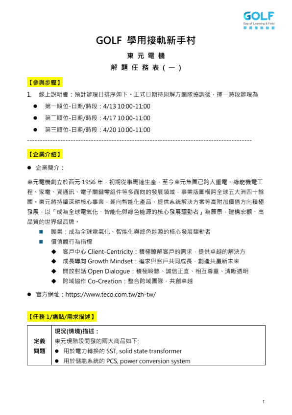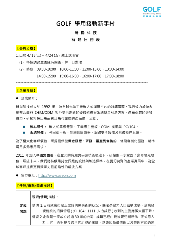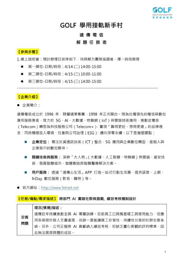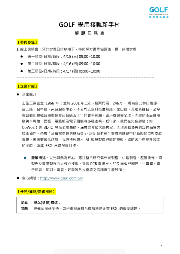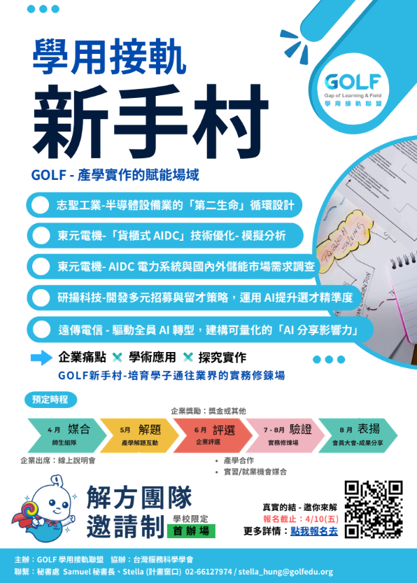 📣第一届GOLF學用接軌新手村企業出題/師生解題活動正式啓動!📣