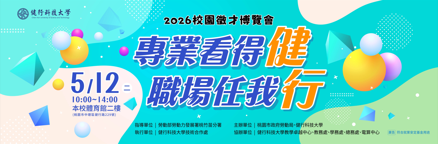 健行科大辦理「專業看得健 職場任我行」2026校園徵才博覽會,歡迎有興趣同學前往~